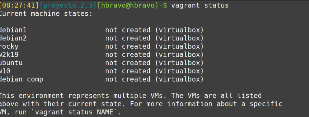 He fet vagrant status dins de la carpeta del proyecte per asegurarme que es detecten les boxes i que est’a tot perfecte.