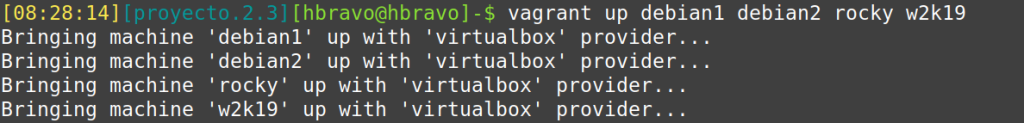 Una vegada comprovat he fet vagrant up a les maquines que havia de tenir jo actuant com a servidor.