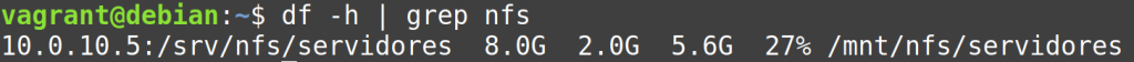 sudo mount 10.0.10.5:/srv/nfs/servidores /mnt/nfs/servidores