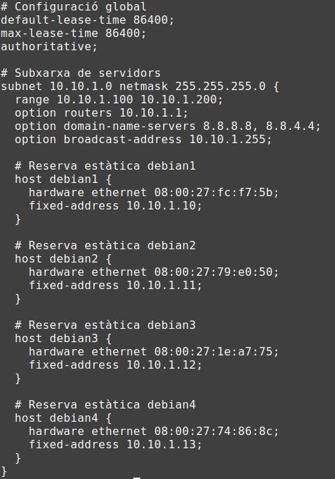 Configuro el fitxer principal de DHCP i afegeixo les MACS: